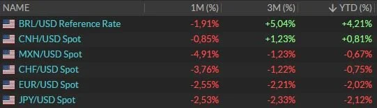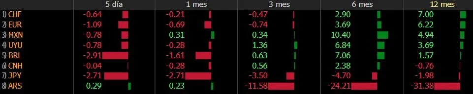 ARS: Peso Argentino – BRL: Real Brasilero – CHF: Franco Suizo – CNH: Remimbi Chino – EUR: Euro – JPY: Yen Japonés – MXN: Peso Mexicano – UYU: Peso Uruguayo